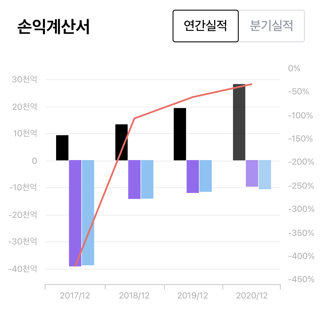 가장 먼저 실적이 좋습니다. 스냅챗은 단순히 꿈만 보고 오르는 스캠 주식들과 달리 실적이 받쳐주면서 주가 상승을 견인하고 있습니다. 2017년부터 2020년까지 매출은 2배가 넘게 늘어났으며, 영업이익과 순이익 적자 폭 역시 줄어들고 있습니다.